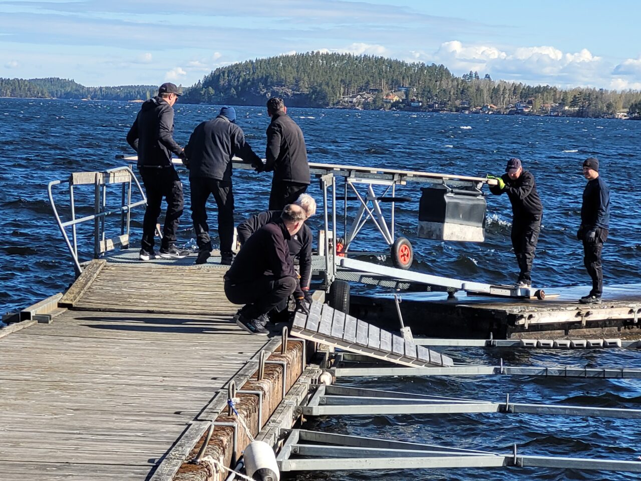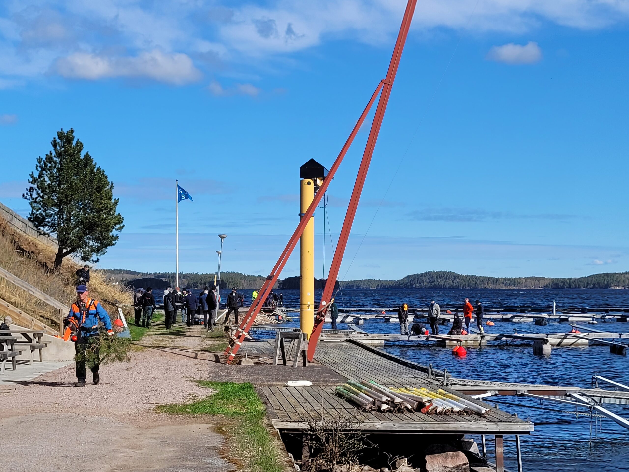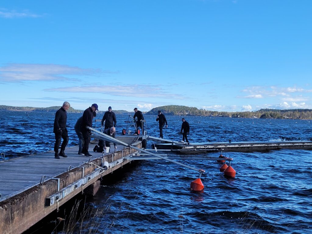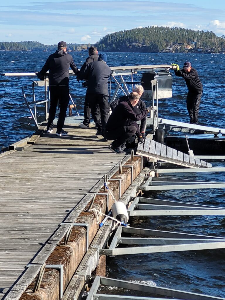 Under lördagen så var det dagas att lägga i våra y-bommar som vi skyddar genom att ta upp dem och lägga dom på kajen.