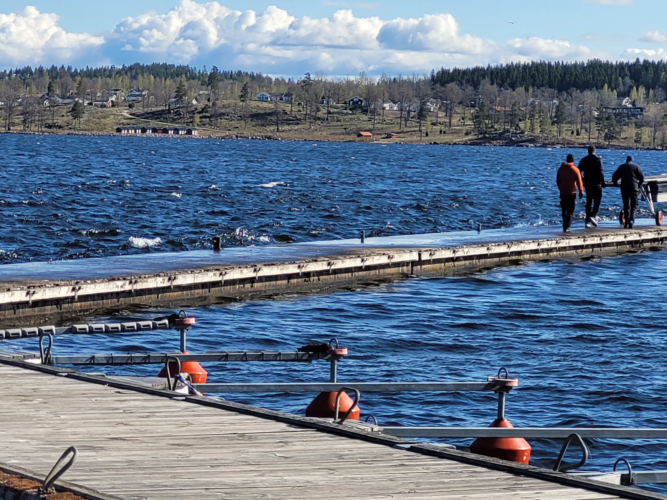 Det var en blåsig dag med vindar upp mot 14 m/s i vindbyarna. Vilkets märktes när man var längs ute på bryggorna och kanske mest på brygga 4 som ligger som en vågbrytare för de andra. Där vågor slog emot och risk för att bli blöt.